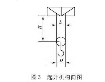 高卷揚電動葫蘆的結構方案在實際運用時,除 1 /1 出繩的方案外,都會出現鋼絲繩纏絞在一起的現象。鋼絲繩纏絞現象的出現會嚴重影響電動葫蘆的正常工作,且會急劇地加大鋼絲繩的磨損。為保證高卷揚電動葫蘆能夠正常工作,必須對高卷揚電動葫蘆的結構再進行一定的修改。圖3為起升機構簡圖。保持系統穩定性的大起升高度可由式 (1) 計算